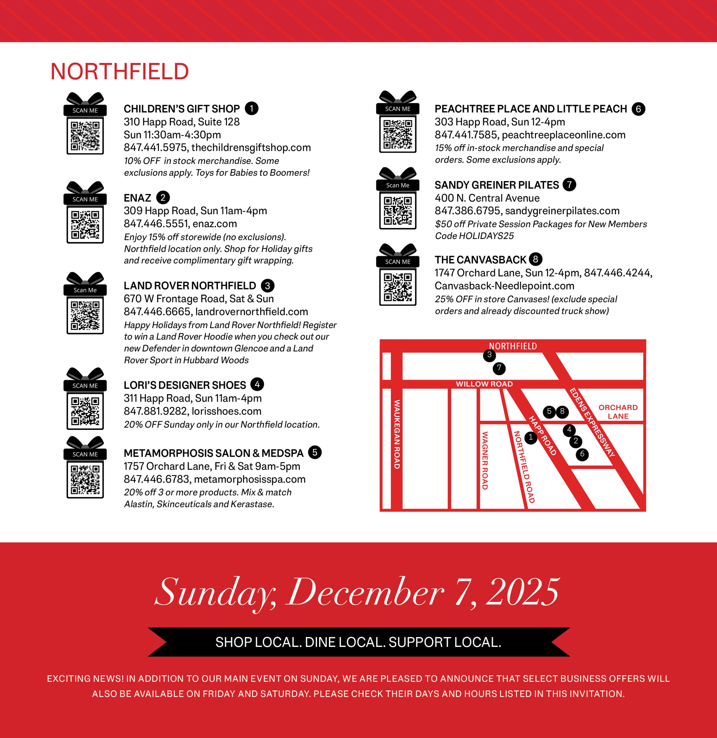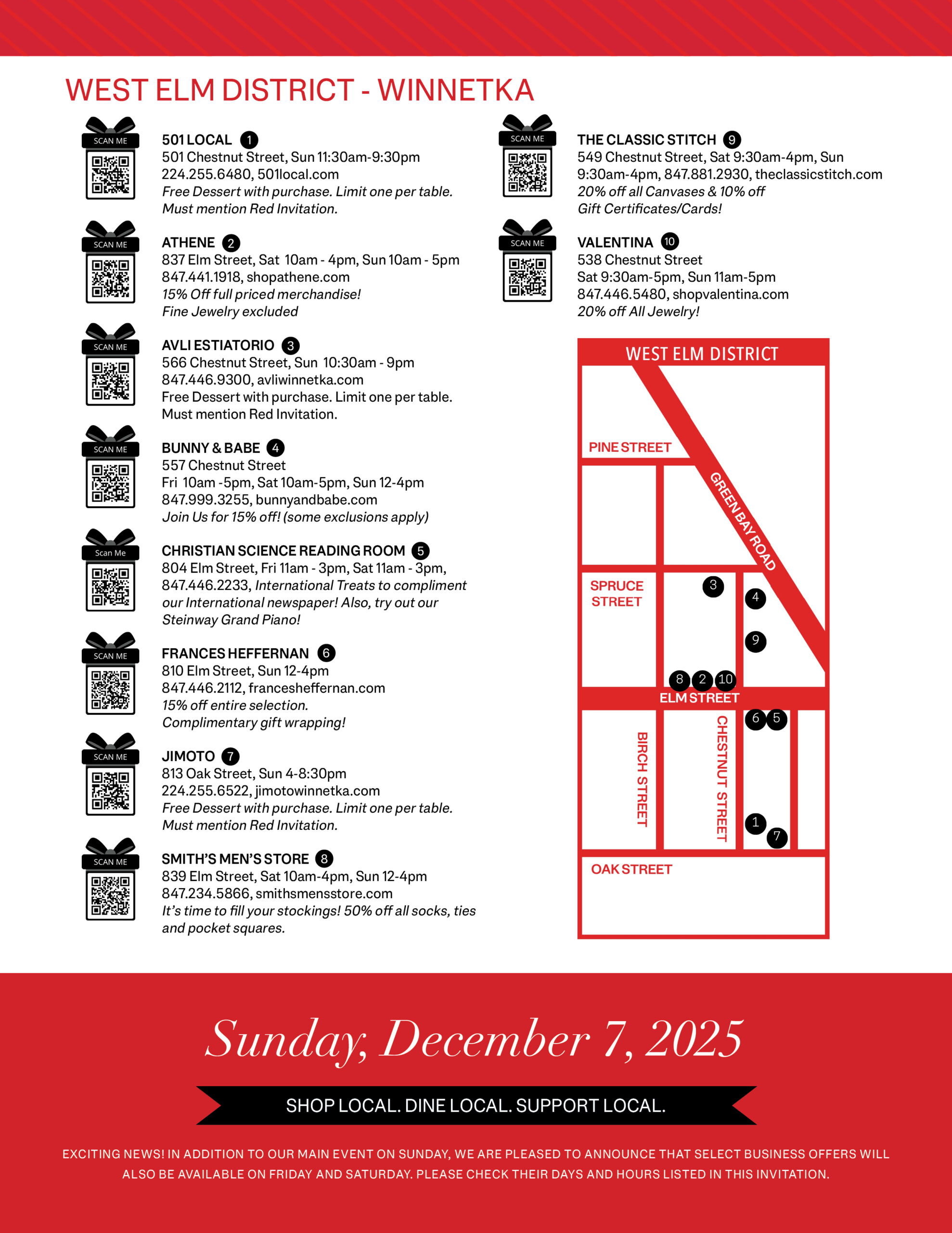 Hosted by the Winnetka-Northfield-Glencoe Chamber of Commerce, the Red Invitation Sunday is December 7, and many shops will extend the celebration to Friday and Saturday of that weekend for more opportunities to shop, stroll, and soak up the holiday cheer.